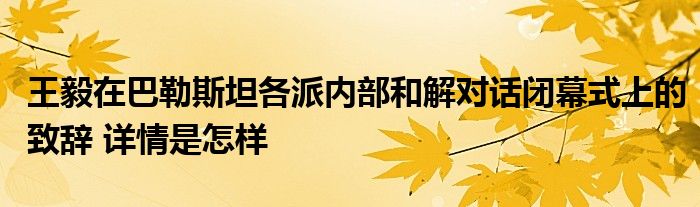 王毅在巴勒斯坦各派内部和解对话闭幕式上的致辞 详情是怎样
