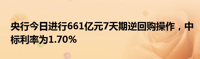 央行今日进行661亿元7天期逆回购操作,中标利率为1.70%