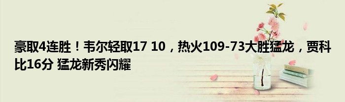 豪取4连胜!韦尔轻取17 10,热火109-73大胜猛龙,贾科比16分 猛龙新秀闪耀