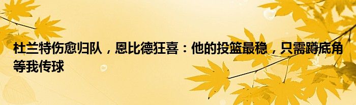 杜兰特伤愈归队,恩比德狂喜:他的投篮最稳,只需蹲底角等我传球