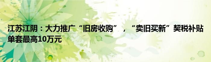 江苏江阴:大力推广“旧房收购”,“卖旧买新”契税补贴单套最高10万元