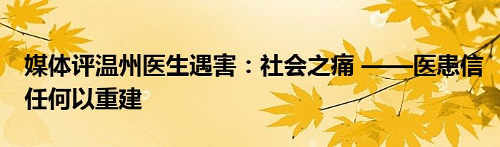 媒体评温州医生遇害:社会之痛 ——医患信任何以重建