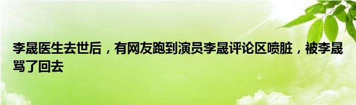 李晟医生去世后,有网友跑到演员李晟评论区喷脏,被李晟骂了回去