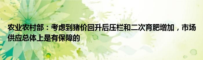 农业农村部:考虑到猪价回升后压栏和二次育肥增加,市场供应总体上是有保障的