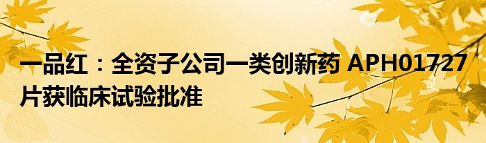 一品红:全资子公司一类创新药 APH01727 片获临床试验批准