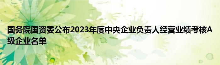 国务院国资委公布2023年度中央企业负责人经营业绩考核A级企业名单