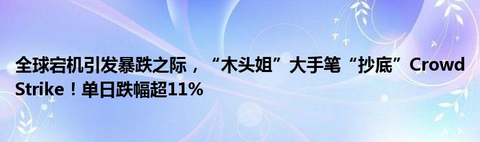 全球宕机引发暴跌之际,“木头姐”大手笔“抄底”CrowdStrike!单日跌幅超11%
