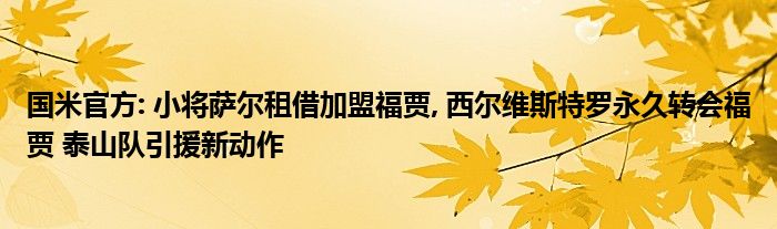 国米官方: 小将萨尔租借加盟福贾, 西尔维斯特罗永久转会福贾 泰山队引援新动作