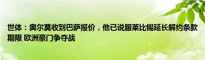世体:奥尔莫收到巴萨报价,他已说服莱比锡延长解约条款期限 欧洲豪门争夺战