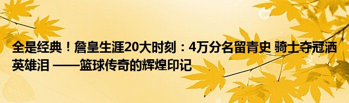 全是经典!詹皇生涯20大时刻:4万分名留青史 骑士夺冠洒英雄泪 ——篮球传奇的辉煌印记