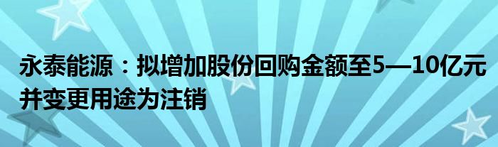 永泰能源:拟增加股份回购金额至5—10亿元并变更用途为注销