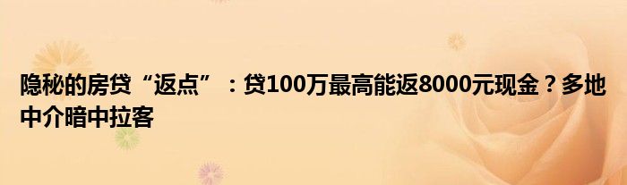 隐秘的房贷“返点”:贷100万最高能返8000元现金?多地中介暗中拉客