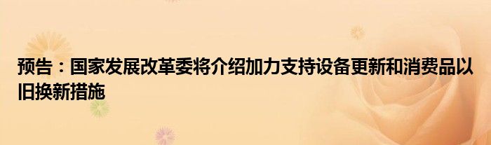 预告:国家发展改革委将介绍加力支持设备更新和消费品以旧换新措施