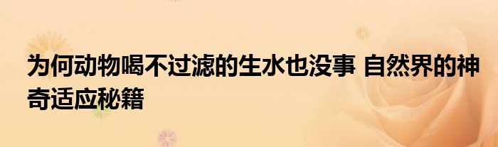 为何动物喝不过滤的生水也没事 自然界的神奇适应秘籍