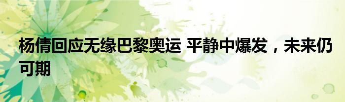 杨倩回应无缘巴黎奥运 平静中爆发,未来仍可期