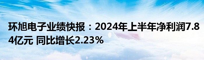 环旭电子业绩快报:2024年上半年净利润7.84亿元 同比增长2.23%