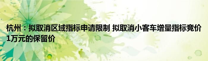 杭州:拟取消区域指标申请限制 拟取消小客车增量指标竞价1万元的保留价