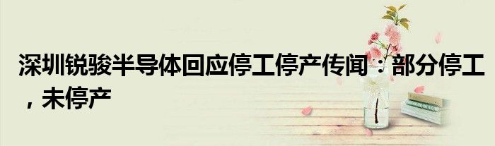 深圳锐骏半导体回应停工停产传闻:部分停工,未停产