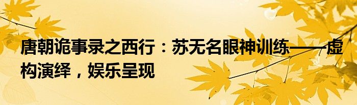 唐朝诡事录之西行:苏无名眼神训练——虚构演绎,娱乐呈现