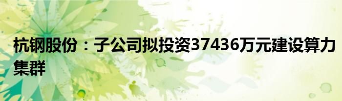 杭钢股份:子公司拟投资37436万元建设算力集群