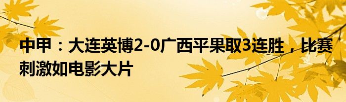 中甲:大连英博2-0广西平果取3连胜,比赛刺激如电影大片