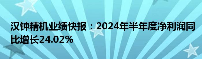 汉钟精机业绩快报:2024年半年度净利润同比增长24.02%