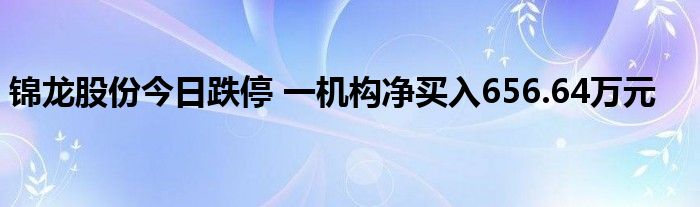 锦龙股份今日跌停 一机构净买入656.64万元