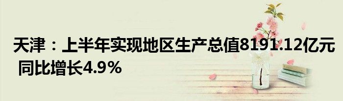 天津:上半年实现地区生产总值8191.12亿元 同比增长4.9%