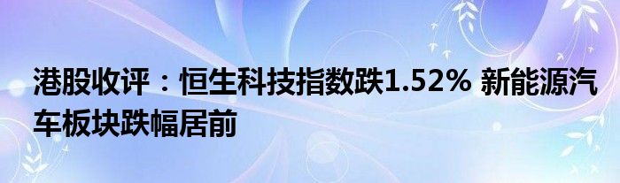 港股收评:恒生科技指数跌1.52% 新能源汽车板块跌幅居前