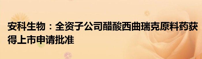 安科生物:全资子公司醋酸西曲瑞克原料药获得上市申请批准
