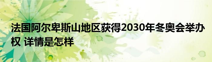 【法国阿尔卑斯山地区获得2030年冬奥会举办权】大家可以一起来了解一下这是什么情况!