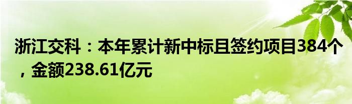浙江交科:本年累计新中标且签约项目384个,金额238.61亿元