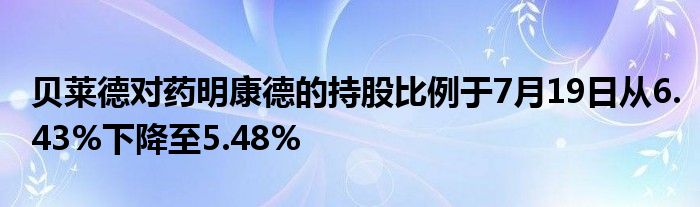 贝莱德对药明康德的持股比例于7月19日从6.43%下降至5.48%