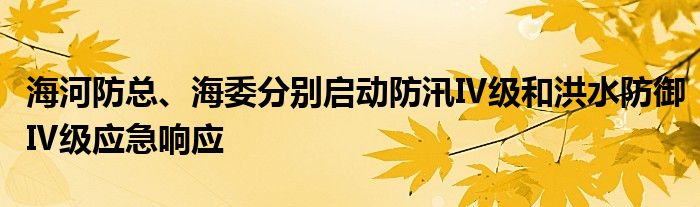 海河防总、海委分别启动防汛Ⅳ级和洪水防御Ⅳ级应急响应