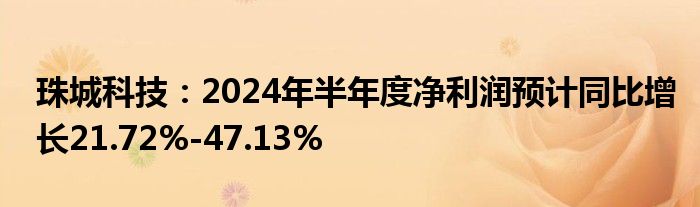 珠城科技:2024年半年度净利润预计同比增长21.72%-47.13%