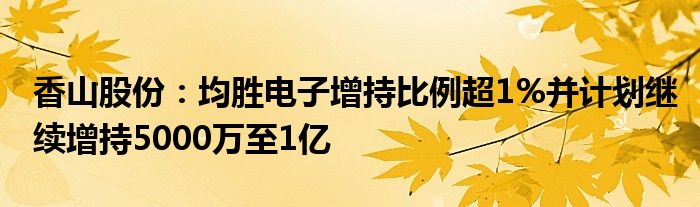 香山股份:均胜电子增持比例超1%并计划继续增持5000万至1亿