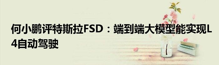 何小鹏评特斯拉FSD:端到端大模型能实现L4自动驾驶