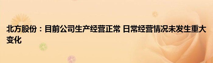 北方股份:目前公司生产经营正常 日常经营情况未发生重大变化