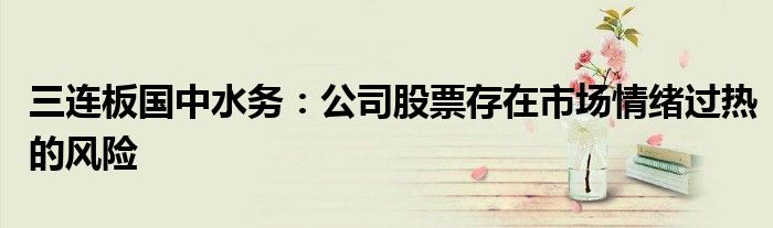 三连板国中水务:公司股票存在市场情绪过热的风险