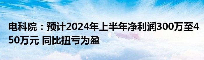 电科院:预计2024年上半年净利润300万至450万元 同比扭亏为盈