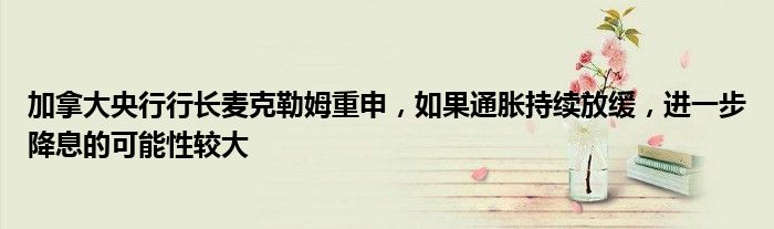 加拿大央行行长麦克勒姆重申,如果通胀持续放缓,进一步降息的可能性较大