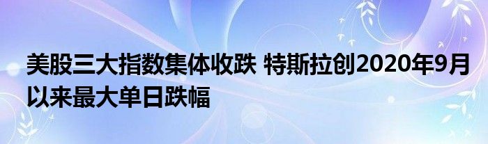 美股三大指数集体收跌 特斯拉创2020年9月以来最大单日跌幅
