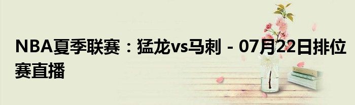 NBA夏季联赛:猛龙vs马刺 - 07月22日排位赛直播
