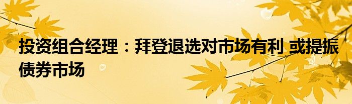 投资组合经理:拜登退选对市场有利 或提振债券市场