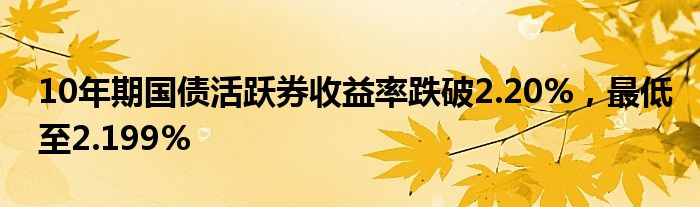 10年期国债活跃券收益率跌破2.20%,最低至2.199%