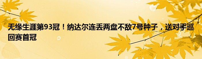 无缘生涯第93冠!纳达尔连丢两盘不敌7号种子,送对手巡回赛首冠。