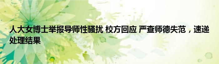 人大女博士举报导师性骚扰 校方回应 严查师德失范,速递处理结果