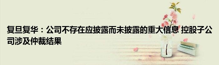 复旦复华:公司不存在应披露而未披露的重大信息 控股子公司涉及仲裁结果