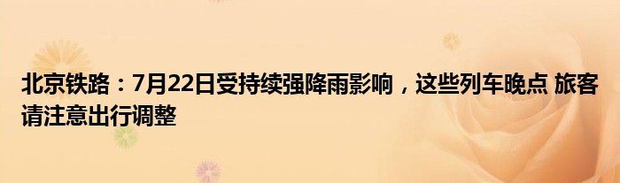 北京铁路:7月22日受持续强降雨影响,这些列车晚点