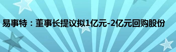 易事特公告,公司董事长何佳先生提议公司以自有资金通过深圳证券交易所交易系统以集中竞价交易方式回购公司已发行的部分人民币普通股 A 股股票。回购资金总额不低于1亿且不超过2亿,回购期限为董事会审议通过最终回购股份方案之日起12个月内。